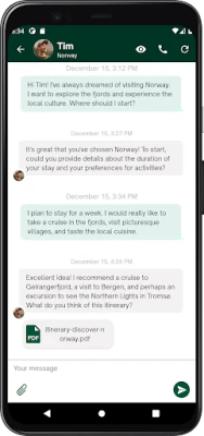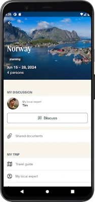 Kogu vajalik reisiinfo on sinuga alati kaasas. Logi sisse Evaneos rakendusse ja pääse ligi kõigile oma reisi üksikasjadele – kuupäevad, sihtkohad, agentide kontaktandmed ja palju muud – otse oma telefonist. Reisil olles võivad tekkida ootamatused, kuid Evaneos tagab sinu meelerahu. Võta vajadusel kiirelt ühendust oma kohaliku agendiga, et lahendada kõik probleemid ja nautida turvalist ja muretut puhkust. Sinu reisikorraldus on sinu taskus, tagades mugavuse ja kindlustunde igal sammul.