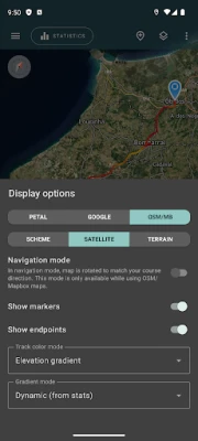 Sukeldu detailidesse tänu Geo Trackeri mitmekülgsetele kaardivalikutele. Vali OSM-i ja Google'i skeemide või Google'i ja Mapboxi satelliidipiltide vahel, et näha oma ümbrust ennenägematu detailsusega. Rakendus salvestab vaadatud kaardialad automaatselt sinu seadmesse, pakkudes mugavat võrguühenduseta juurdepääsu ka siis, kui internetiühendus puudub. Lisaks teekonna salvestamisele pakub Geo Tracker põhjalikku statistikat, mis hõlmab läbitud vahemaad, kiirusi (nii keskmist kui maksimaalset), kõrguste vahet, vertikaalset tõusu ja langust ning isegi kaldenurki. Kõik need andmed visualiseeritakse selgete graafikutena, andes sulle täieliku ülevaate igast seiklusest. Saad hõlpsasti märkida oma teekonnale olulisi punkte ja isegi leida koordinaatide abil kaardil mis tahes asukoha. Kui on vaja suunda, aitab navigatsioonirežiim kaardi automaatse pööramisega.